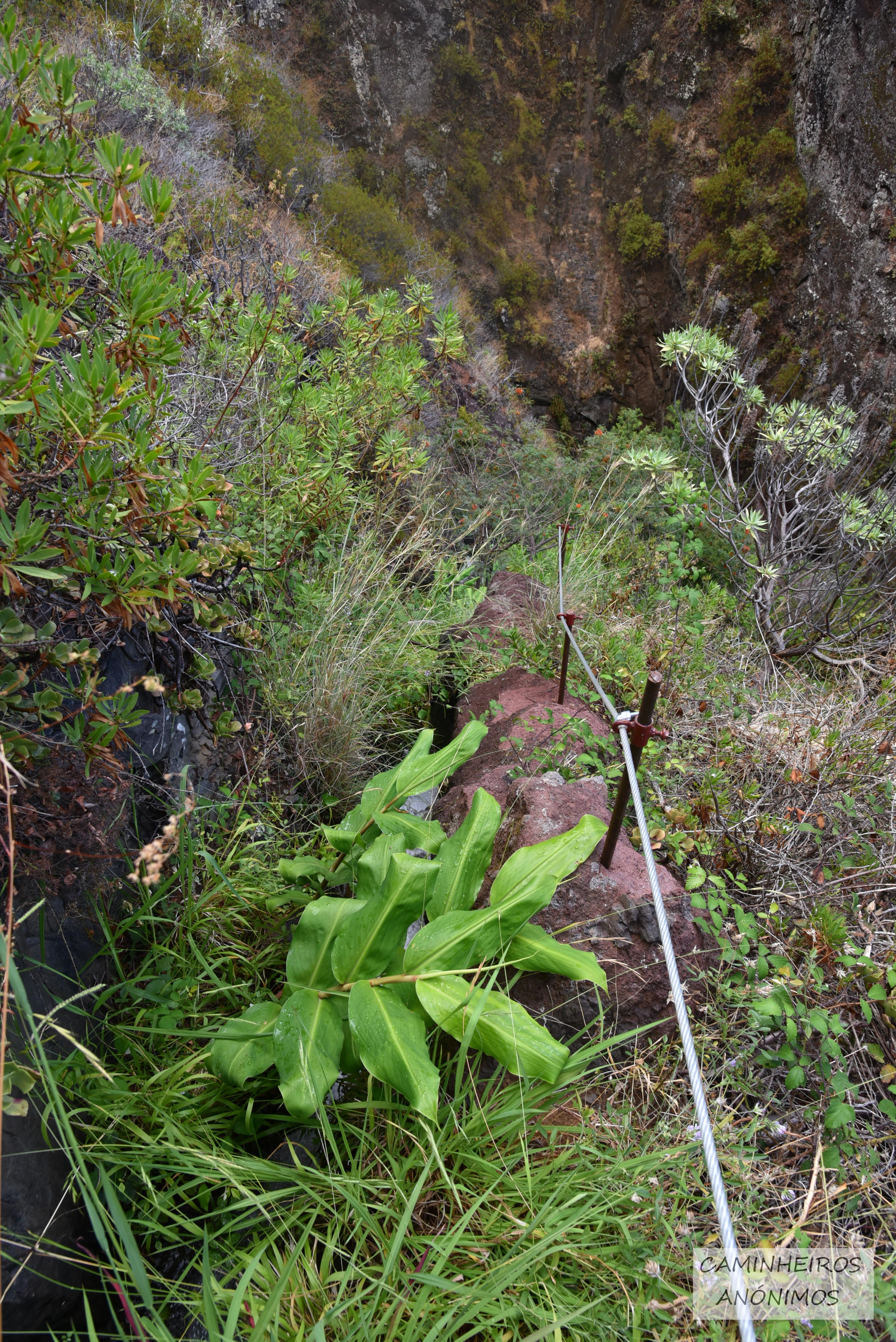 Troço de levada quase vertical, proximidades da Ribeira das Galinhas. Foto de 8/8/2021. |